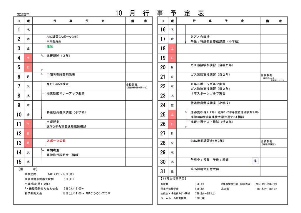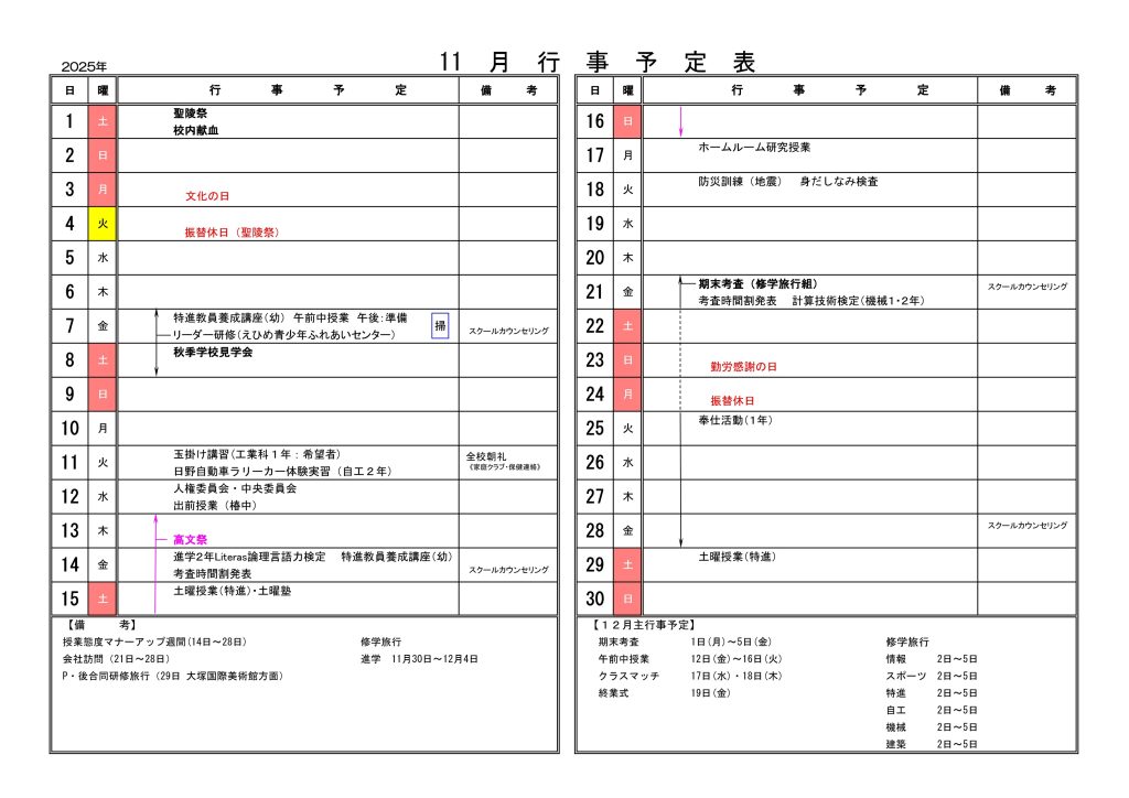 NEWS お知らせ HOME学校情報行事予定(2025年11月を追加しました) 学校情報 2025.10.18 行事予定(2025年11月を追加しました) 2025年11月の行事 2025年10月の行事 2025年9月の行事 2025年7月 8月の行事 2025年6月の行事 2025年5月の行事 2025年4月の行事 2025年3月の行事 2025年2月の行事 2025年1月の行事 一覧に戻る