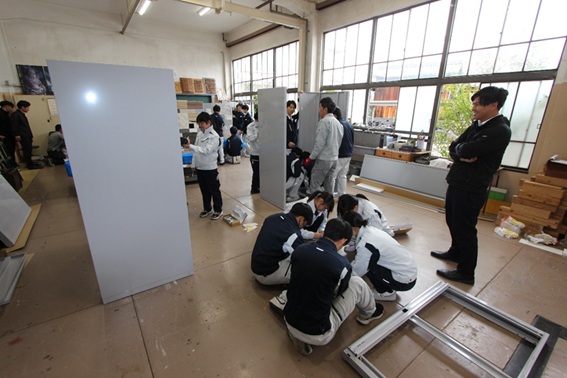 タイルについて学びつつ、物置の設置と解体の体験実習など慣れない作業で生徒たちはとても戸惑っていましたが、楽しく一生懸命に取り組むことができました。