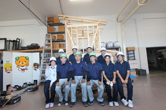 また、マイスターコースの生徒7名は模擬の棟上げ作業を体験しました。普段の実習では経験できない棟上げ作業を、図面と実際の部材を確認しながら順序通りに組み上げることで、建築現場の技術を実感することができました。